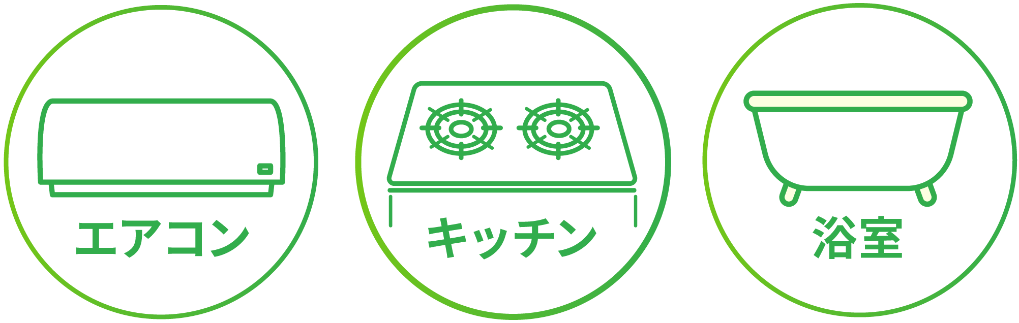 エアコンクリーニングをはじめ、キッチンや浴室、トイレ、洗濯機などのハウスクリーニングを幅広く承っています。